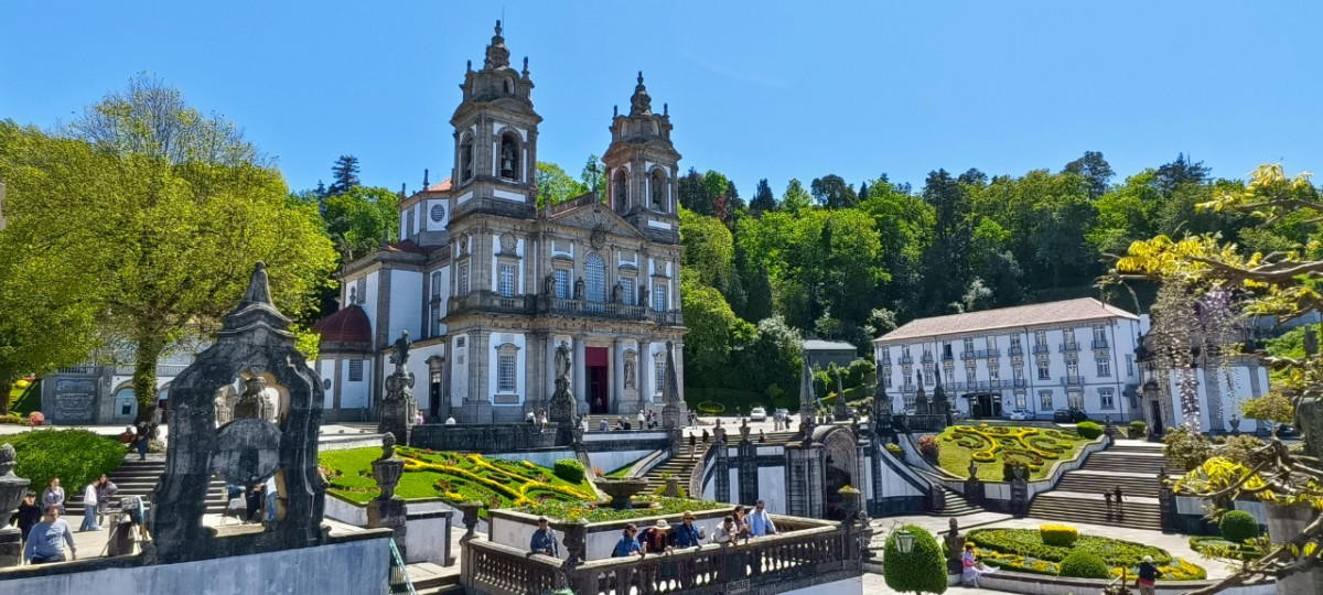 在所有走訪的世界遺產地之後,最為驚豔的就是位於葡萄牙北部城市布拉加郊外Tenões的文化(iv)遺產:仁慈耶穌朝聖所 (Santuário do Bom Jesus do Monte),登錄年份為2019年(第43屆會議)。它以宏偉的爬升116公尺的之字形巴洛克台階而著稱,近年來已成為布拉加重要的旅遊景點。適逢春暖花開時節,抵達時園區百花齊放、氣候舒適,居高臨下,十分舒心,先放些照片欣賞。