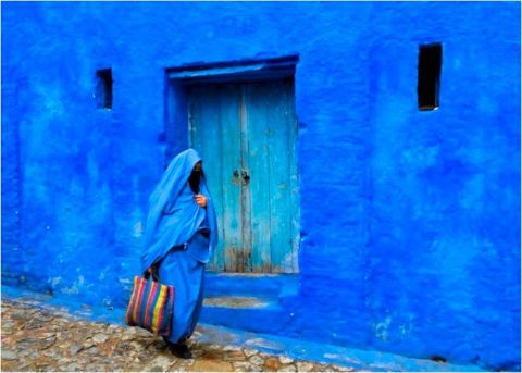 這座位於摩洛哥北部山區的小城,幾乎所有建築都被刷上藍色。