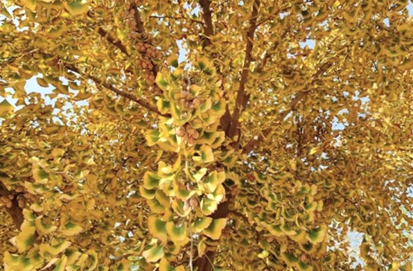北京的秋天很短,正是<夏去冬來>的情調,城市的一角短暫秋光,在銀杏樹下最能感受,銀杏葉在秋季轉黃的時間也不長。雖是秋之變化莫測與短暫,然啽大地有了銀杏樹,卻足以讓一座城市在轉瞬間進入一種集體默契。人們知道何時該出門,該走去哪條路,該在什麼時候停下腳步看樹下落葉,手機舉起的角度幾乎一致。銀杏在此不只是一種植物,而是城市與季節約定好的一場儀式,黃金色成了這個時節最易辨認的語言。