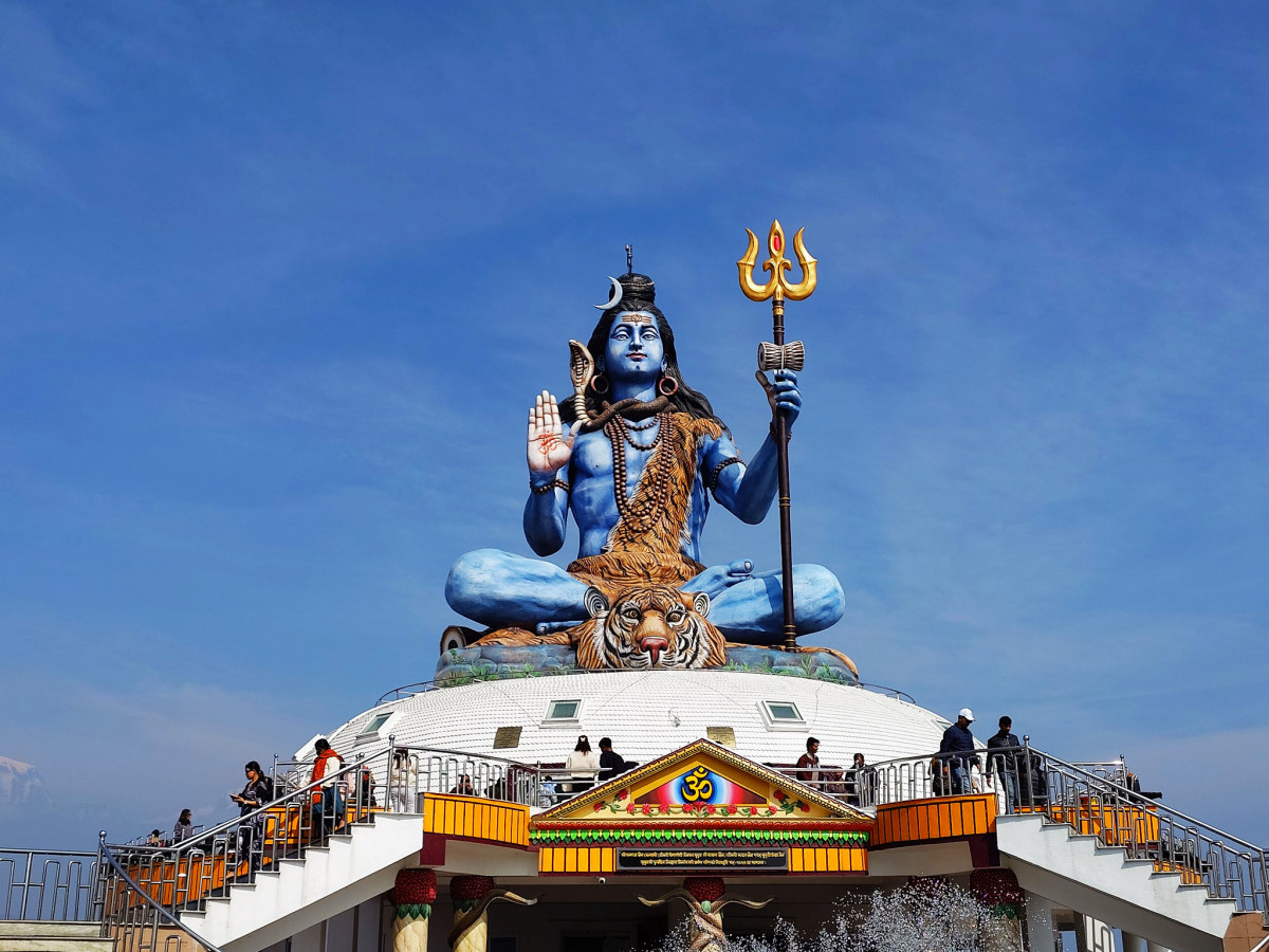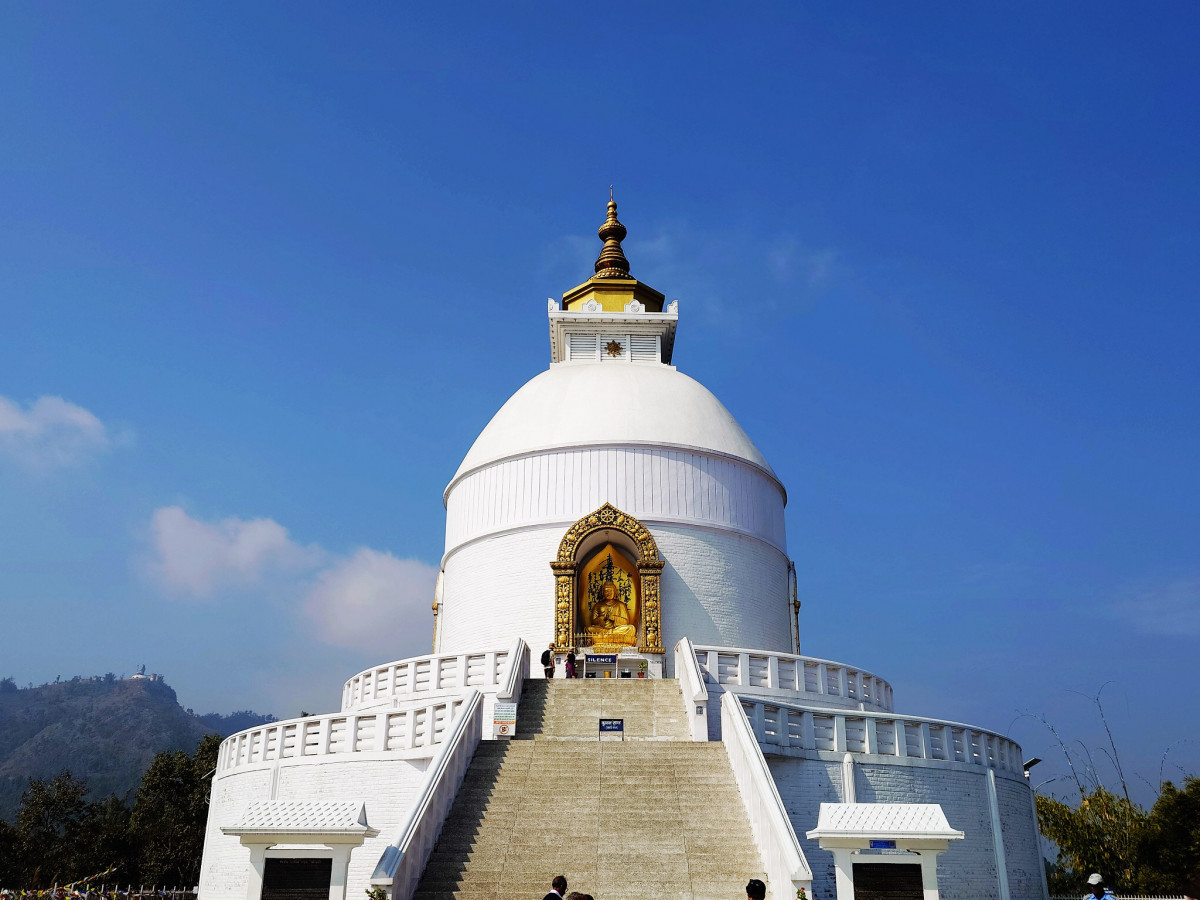 附帶一提從湖中往山上一看便可以看到世界和平塔與濕婆神的雕像佇立在高山上。