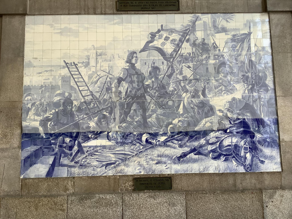 其中一幅畫描繪1415年亨利王子跟隨父親國王約翰帶著葡萄牙船隊駛過直布羅陀海峽,攻打摩洛哥的穆斯林港口休達,取得勝利的畫面。休達的淪陷令歐洲大為震驚,因為它曾是整個地中海最堅固和最具有戰略意義的要塞。
