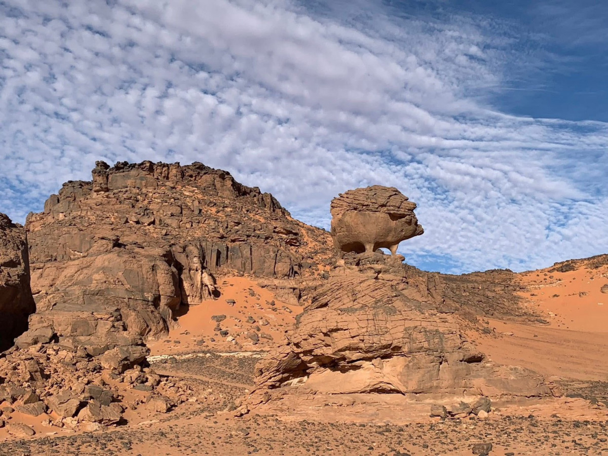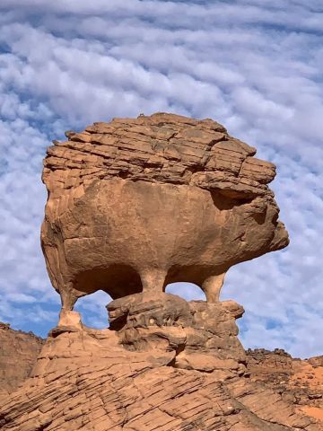 在阿爾及利亞的撒哈拉深處,風與時間雕刻了一頭沉思的野豬。它靜靜蹲伏在岩層之巔,守望著千年的風沙與旅人……