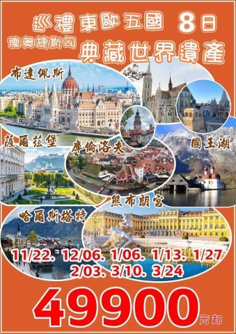 布達佩斯 ✦ 薩爾茲堡 ✦ 庫倫洛夫 ✦ 哈爾斯塔特 ✦ 熊布朗宮 ✦ 國王湖