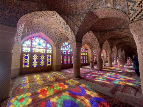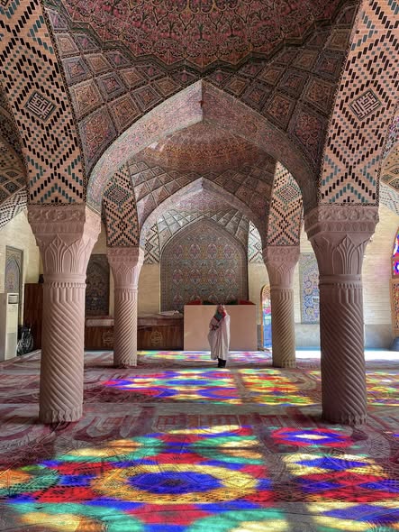 這裡是伊朗最浪漫的聖地、攝影者的天堂、旅人心中永不褪色的回憶。粉紅與藍彩交織的天花、精緻幾何花磚與玫瑰圖騰,讓每一步都像走在詩篇裡。來此親身體驗,絕對顛覆您對清真寺的想像。