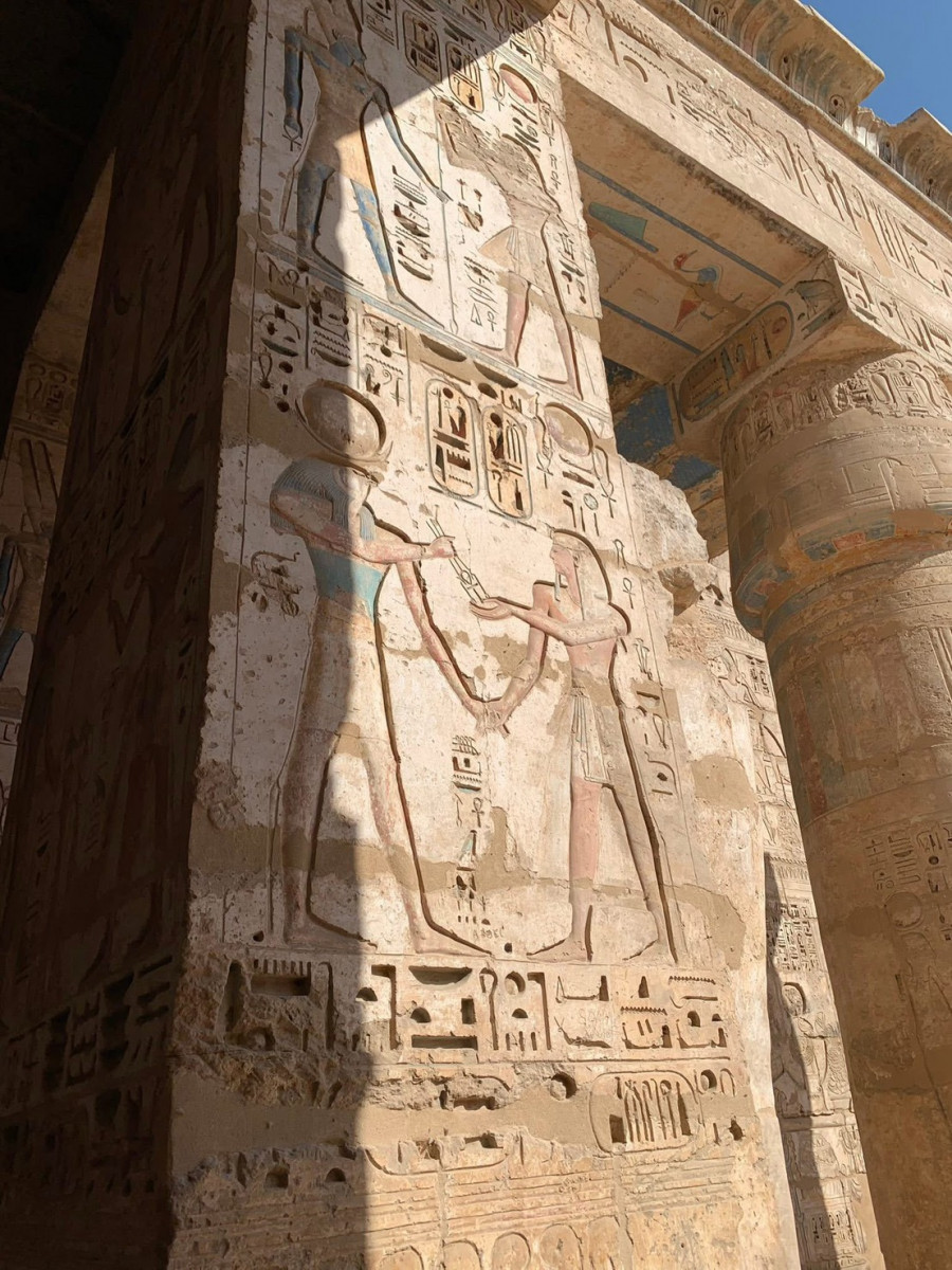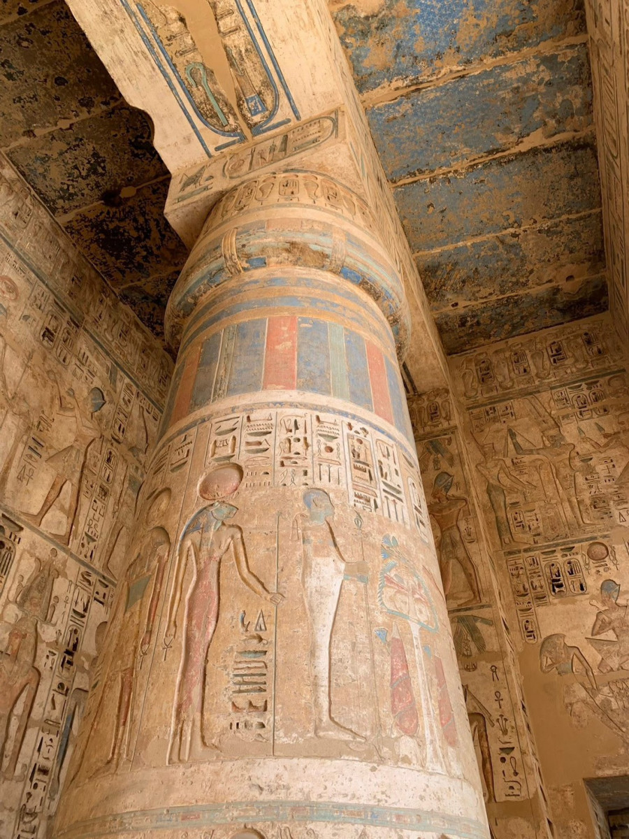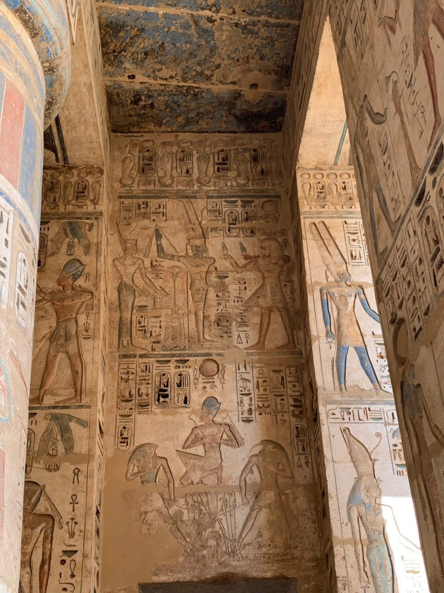 高牆浮雕完整記錄海上民族之戰、王權儀式與宗教祭典,色彩至今仍可辨識。是星球埃及旅程的私藏亮點。