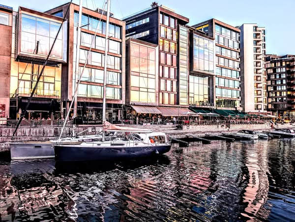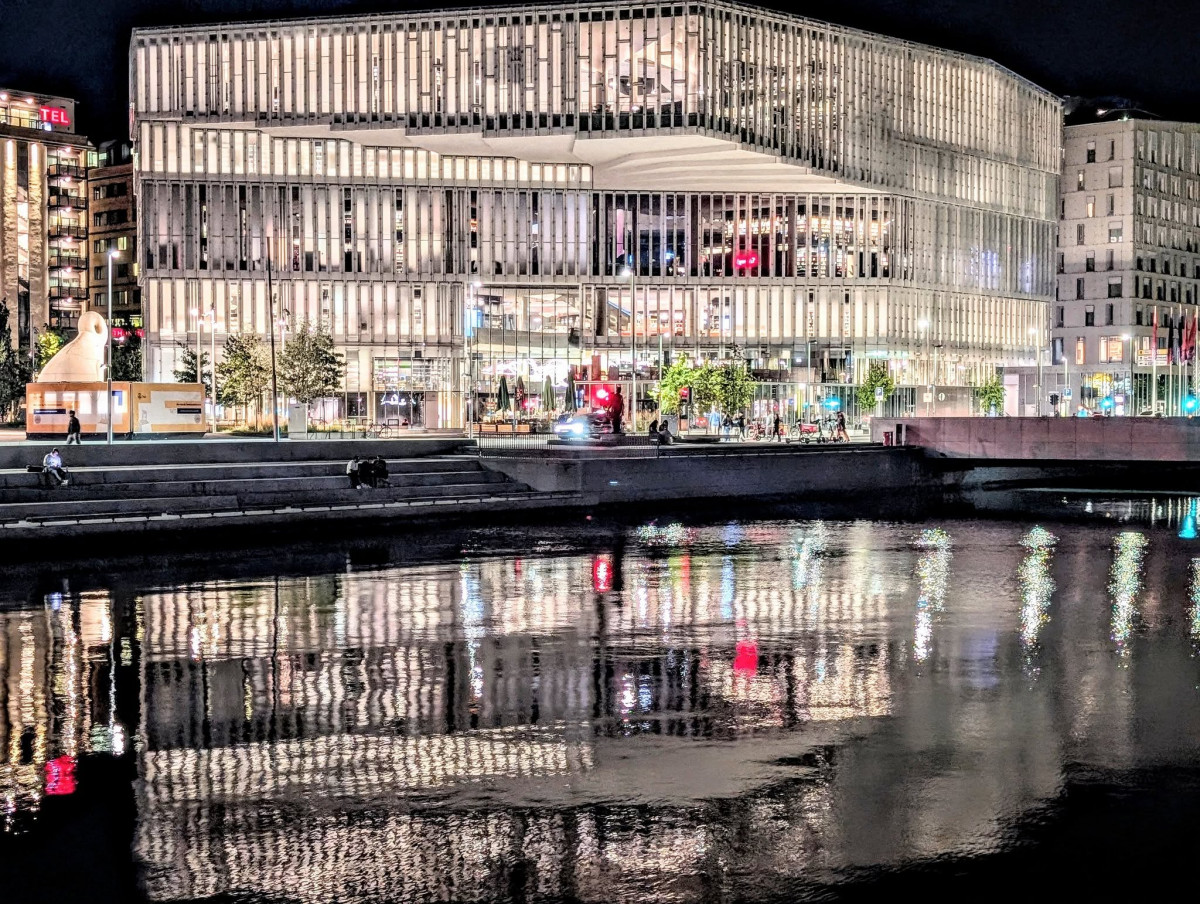 這兩棟建築加上孟克美術館(MUNCH),都是2000 年開始的奧斯陸港灣造鎮計畫(Fjord City / Fjordbyen),將老舊港口、貨櫃碼頭轉型為 綜合文化、住宅、辦公與休閒的濱水新市區。