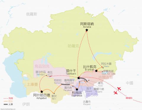 包含哈薩克首都-阿斯塔那,以及中亞糧倉-費爾干納谷地
