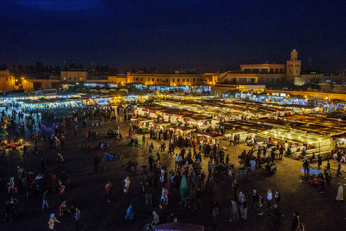 抵達後來到馬拉喀什舊城區附近著名的【庫圖比亞清真寺Koutoubia Mosque】,再前往世界文化遺產【德吉馬廣場Djemaa el-Fna】(UNESCO,1985)旁的舊城區,這個可以看上2~3個小時的舊城區最裡面還有【城堡區Kasbah】和【猶太區Mellah】,走回廣場區,觀賞各式各樣的街頭雜耍,耍猴、舞蛇、算命、擺攤、小吃…等,令人目不暇給,別忘了在路邊找個露天茶座,喝上一杯道地的薄荷茶。