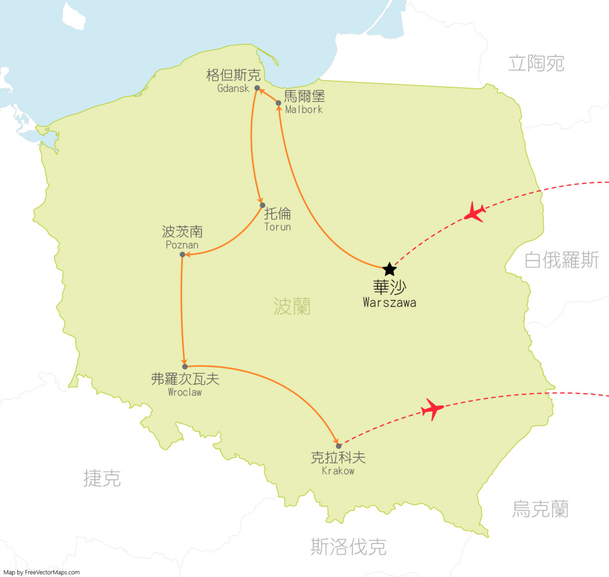 中午前抵達波蘭首都【華沙】,隨即展開對這個城市的探訪。雖然二次大戰中整個城市幾乎被夷為平地,90%人口被殺害或逃亡;今天的華沙,赫然已恢復到大國首都的氣象。我們從被列入聯合國人類文化遺址【UNESCO】的老城區出發,造訪滿溢歷史氣息的華沙城堡、皇宮、國會城堡廣場、逗留於新城區的現代氛圍,感受和領會華沙的前世今生。