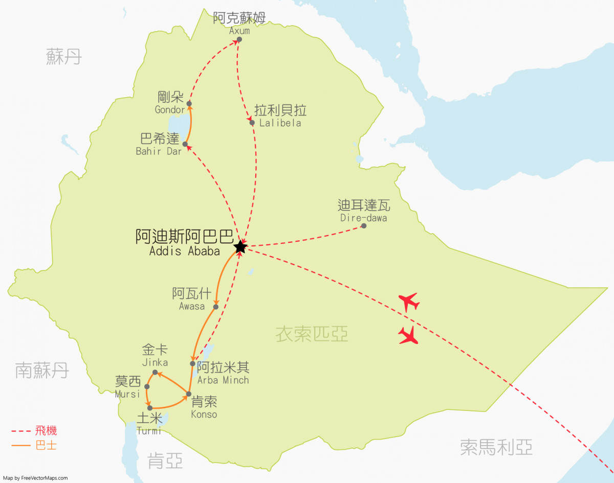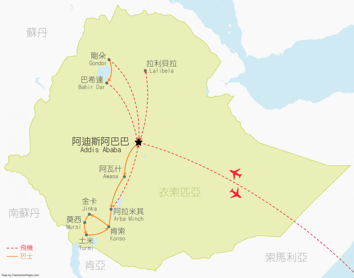 2025/12/21 - 2026/01/04 訂價:238,000元。(前10名優惠3,000元,不含小費。機票自理及外站join者,恕無法享受此優惠) 出團日期:12/21(黃建忠、已成團) 葡萄牙人在1520年開路先鋒地披荊斬棘到達衣索匹亞的皇宮,旅程由艾瓦尼茲(Francisco Alvarez)神父負責記事,神父是首位親眼見到在拉利貝拉(Lalibela)於岩石中開鑿的聲名遠播的地平面下教堂群的外國人。多年後他在回憶式敘述中,把對這些鑿在堅岩中的建物的敘述截短了,艾瓦尼茲神父自辯:「我已乏力替這些偉蹟奇工再寫更多了,因為我似乎感到會被指控所言不實。」這是差不多五百年前成文的。 行程特色 【多段國內段機票】 【北部文明古國探索】 【南部原始部落驚艶】 【參觀六個世界文化遺產】 參考航班(實際以說明會公告為準): 分日行程說明: