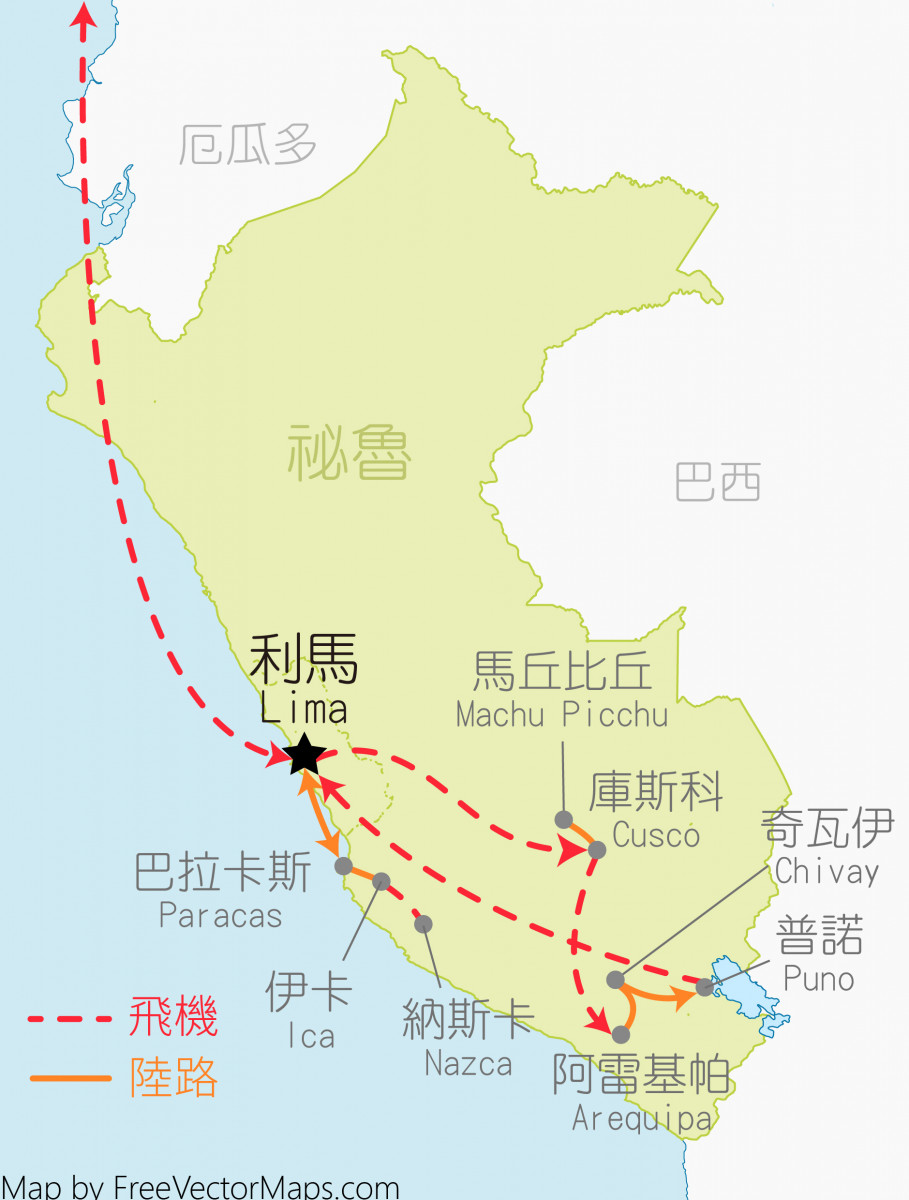 1.此團進入秘魯持台灣護照之旅客免簽證。 旅遊地區注意事項: