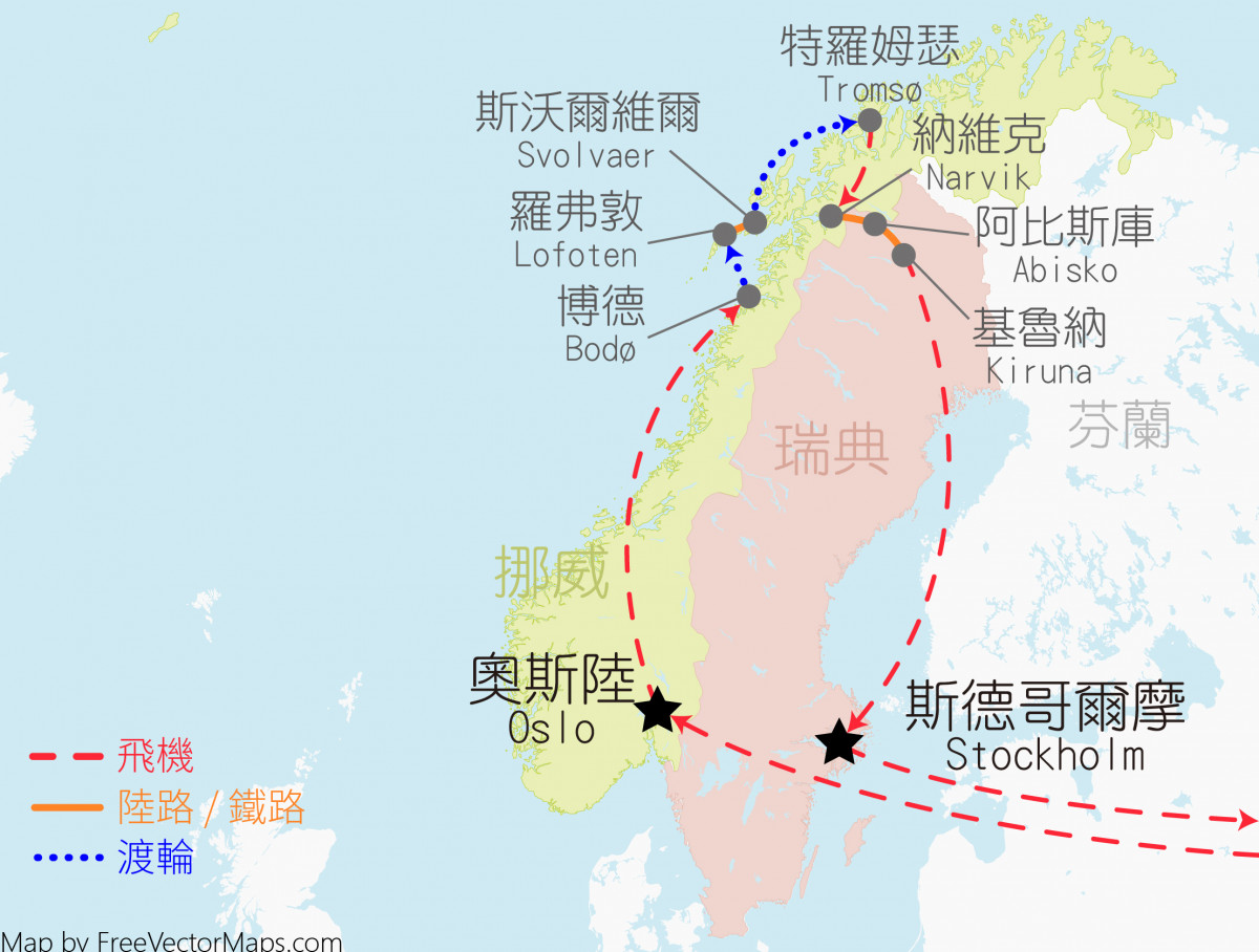 2026/03/13 - 2026/03/24 出發日期:2026/03/13、10/16 歐若拉之光,綻放在極夜與夢境之間。極光——美麗、神祕、難以捉摸,讓人甘願追逐,只因傳說中,遇見她,便會帶來幸福。2024–2025,恰逢太陽風暴第25週期高峰,極光大爆發:頻率更高、亮度更強,瑞典阿比斯庫(Abisko)、挪威特羅姆瑟(Tromsø)等地,夜空中不只飛舞著綠光,更常見紅、紫、藍交錯成畫,如夢似幻。選對地方,就不必追逐。拉普蘭地區(Lapland),這個世外桃源之境,風景絕美多變、遠離光害的靜謐之地,走出房門極光就在天際綻放;不需遠行,只需抬頭仰望。足夠日照的白天,峽灣、森林與湖泊世外桃源般的仙境絲毫不遜色。秋天的北國,如同被調色盤打翻,一步一景,處處都是無聲的驚嘆。 行程特色: 參考航班:(實際航班以說明會公佈為準): ![]() 分日行程說明: