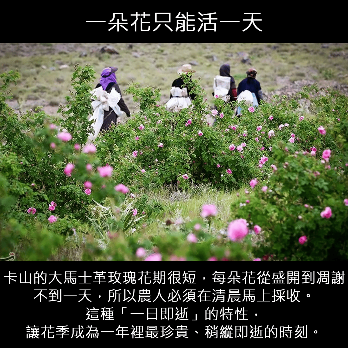 卡尚的第二張名片是玫瑰花產業。提到玫瑰花和玫瑰精油大多會想到保加利亞和大馬什革玫瑰。其實保加利亞種植的大馬什革玫瑰原產地是伊朗,伊朗的沙漠綠洲卡山專用於提煉玫瑰水和玫瑰精油的玫瑰花,在伊朗名叫默罕默德玫瑰。這種玫瑰花就有與眾不同的特殊香氣,後來卡山的玫瑰和種植技術傳到了敘利亞,十字軍遠征時又把這種玫瑰花帶回了歐洲,歐洲人叫她大馬什革玫瑰。十四世紀開始保加利亞及法國等地廣為種植並用來製作精油和香水。大馬什革玫瑰是世界上公認的優質玫瑰花品種。灰綠色的葉片,花莖上有硬毛,花開重瓣,花瓣邊緣呈淺粉色,有綢緞般的質感,純粹細膩的花香冠壓群芳,是油用玫瑰中的極品。