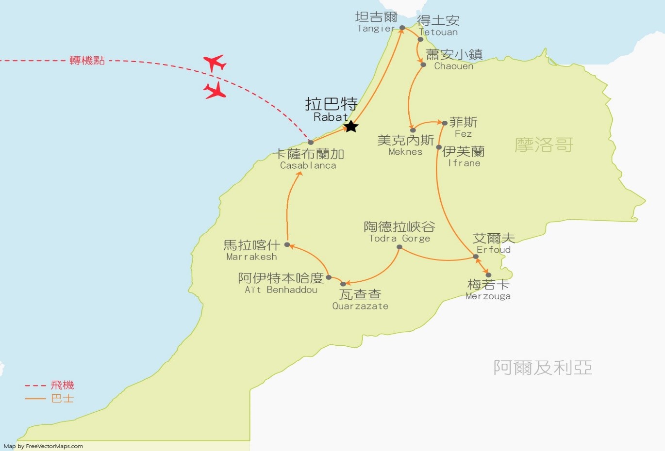 第 2 天 轉機點/卡薩布蘭加CMN-(110KM)拉巴特Rabat