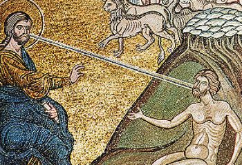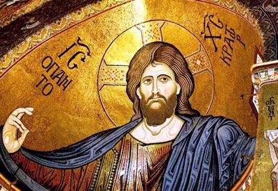 有趣的是耶穌的右手姿勢,平常在拜占庭東正教的耶穌肖像通常大拇指食指和中指張開代表對信徒祝福,而此處耶穌大拇指環扣住無名指和小指代表聖父聖子聖靈三位一體,而中指食指朝向宇宙,而對希臘東正教徒祈福,這種手印的語言都被完美無疵的傳襲至今,確是文化遺產的驕傲。