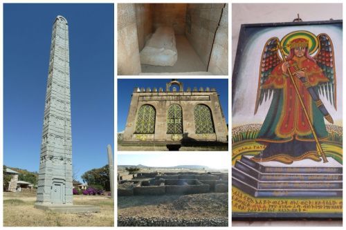 阿克森姆古城的遺址位於衣索匹亞北部邊境附近。在古衣索匹亞時代,這裡是王國的中心,當時阿克森姆王國是東羅馬帝國和波斯帝國之間最強大的國家。當地發現的大量遺跡都可以追溯到西元1世紀到13世紀之間,這些發現包括方尖石塔、大型石柱、王室墓地和古代城堡。4世紀,阿克森姆國王埃紮那開始信奉基督教,4~6世紀是王國的鼎盛時期,作為阿克森姆王國當時的政治、文化的中心,即使後來遷都拉裡貝拉,新國王的加冕儀式也還在這裡舉行。遺址在1980年列名在UNESCO。