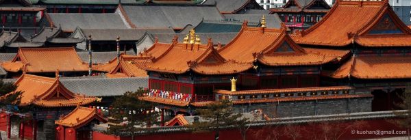 走進大召寺大殿,幽暗的光線,使氣氛一下子變的肅穆莊嚴。主殿裡,明代三世達賴親自開光的銀佛坐於中央,兩旁的柱子龍雕盤旋而上,非常精緻。周圍的壁畫雖有些許缺損,但仍不減古老而珍貴的感覺。