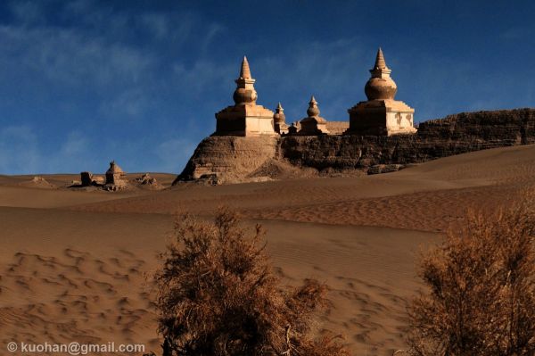 內蒙古西南邊的阿拉善和額濟納,大沙漠就像魔女,乾燥得彷佛要吞噬所有生命似的,卻有著度母般慈悲的胸懷,以藏傳佛教化育她的子民。