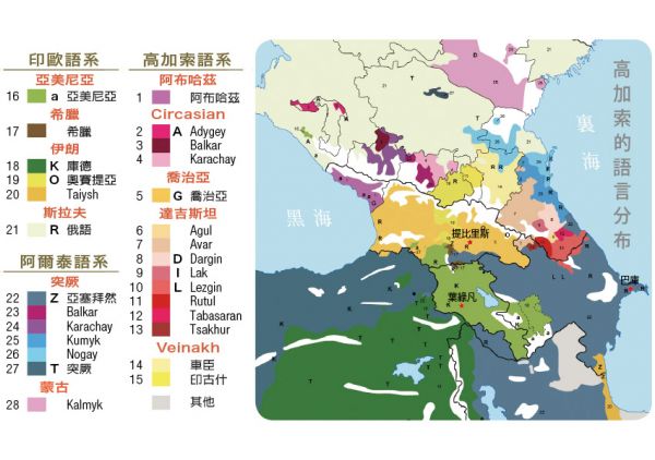 高加索地區總人口不足4000萬人,卻有高加索、印歐與阿爾泰三大語系交錯、50多個民族在此共同生活。由於地勢複雜,許多民族雖近在咫尺,語言卻完全不通。